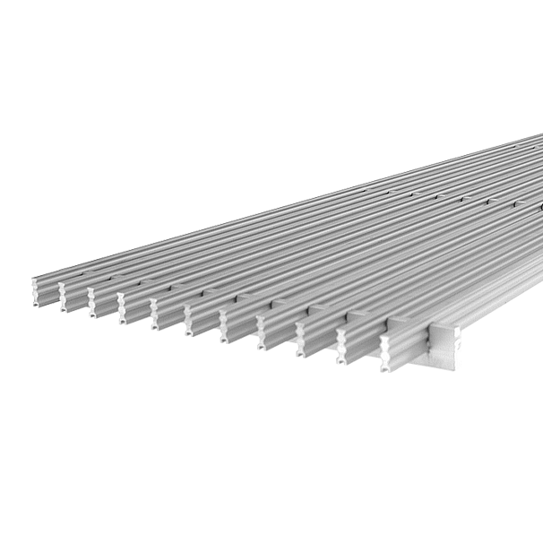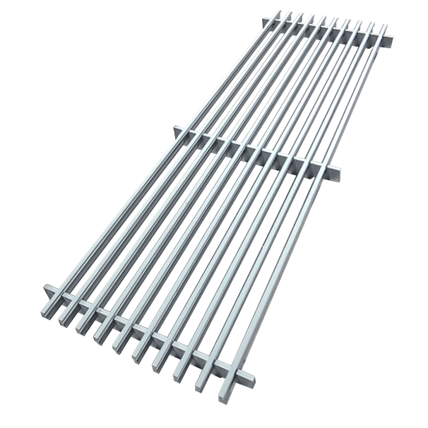 Продольные решетки для внутрипольных конвекторов серии LGA. Решетка является единственным видимым сегментом внутрипольного конвектора. Обрамление (рамка) изготовлено из анодированного алюминия и может быть покрашено в любой желаемый цвет.